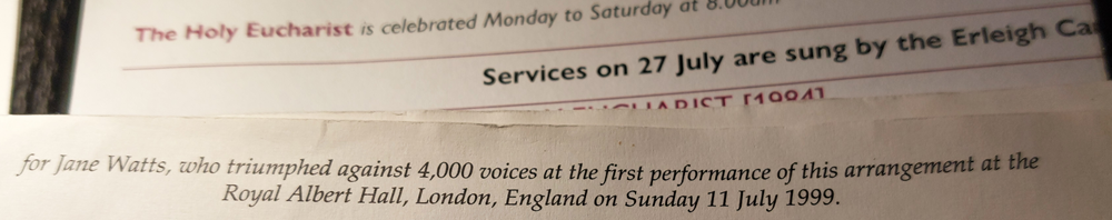 *although it is not strictly true that the Chamber Choir started off singing monthly at the Family Communion and then took on other services. Our very first service was a weekday Evensong, and Evensongs and the more formal 11.30 Eucharist have been assigned to us from the start.
